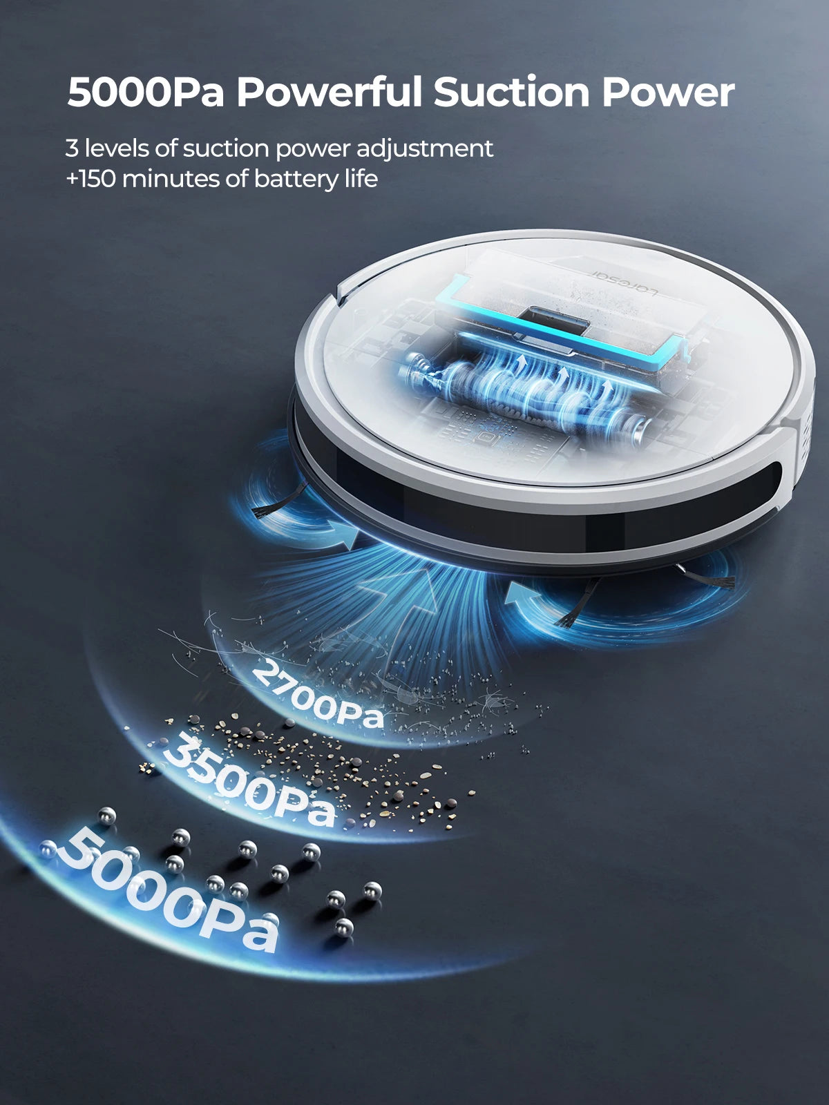 Mit bis zu 5000 Pa Saugkraft, intelligenter Kartenverwaltung und einer smart gesteuerten Wischfunktion sorgt er zuverlässig für gründliche Sauberkeit – ganz automatisch.