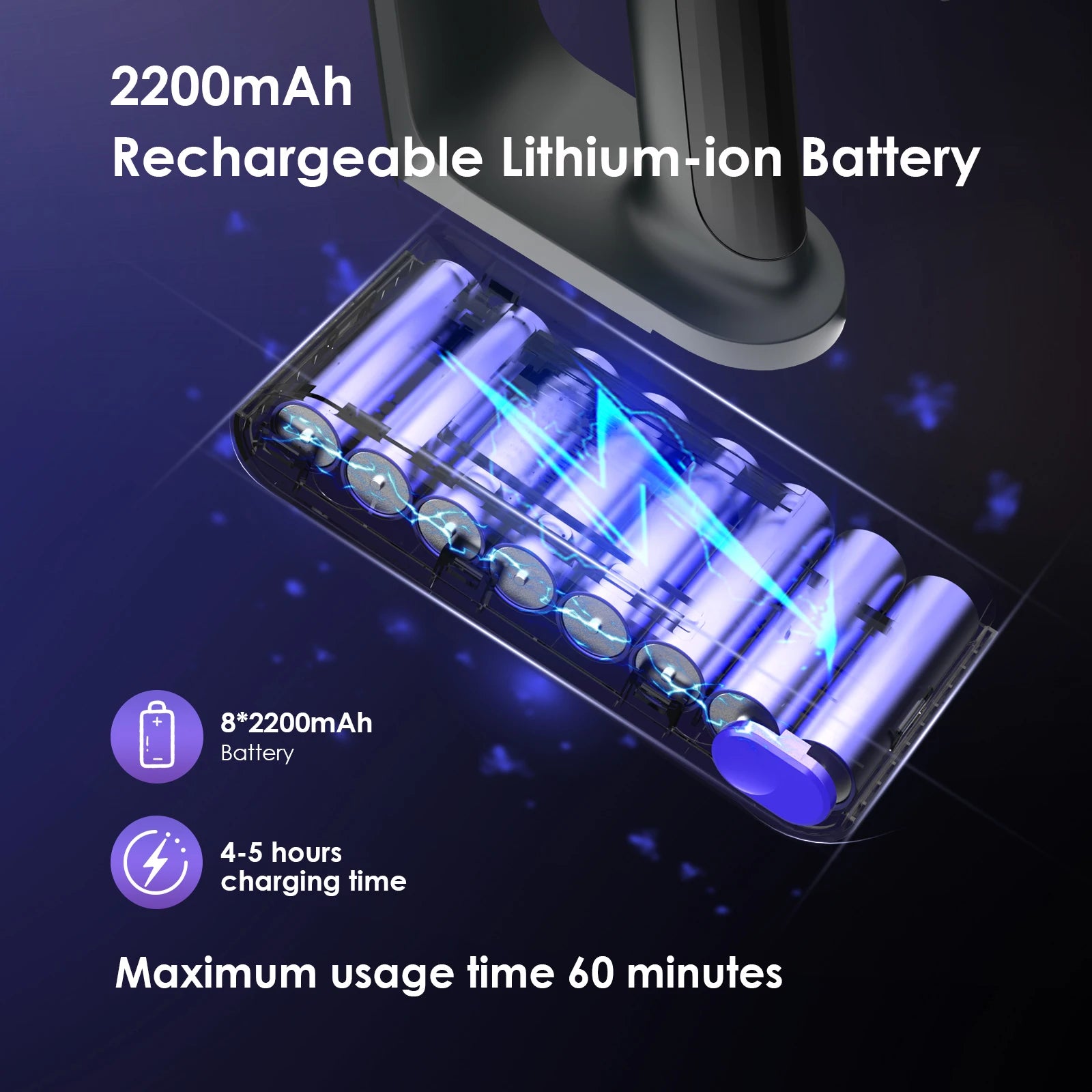 Kabellos & langlebig: 8 × 2200mAh Akku, bis zu 60 Minuten Laufzeit